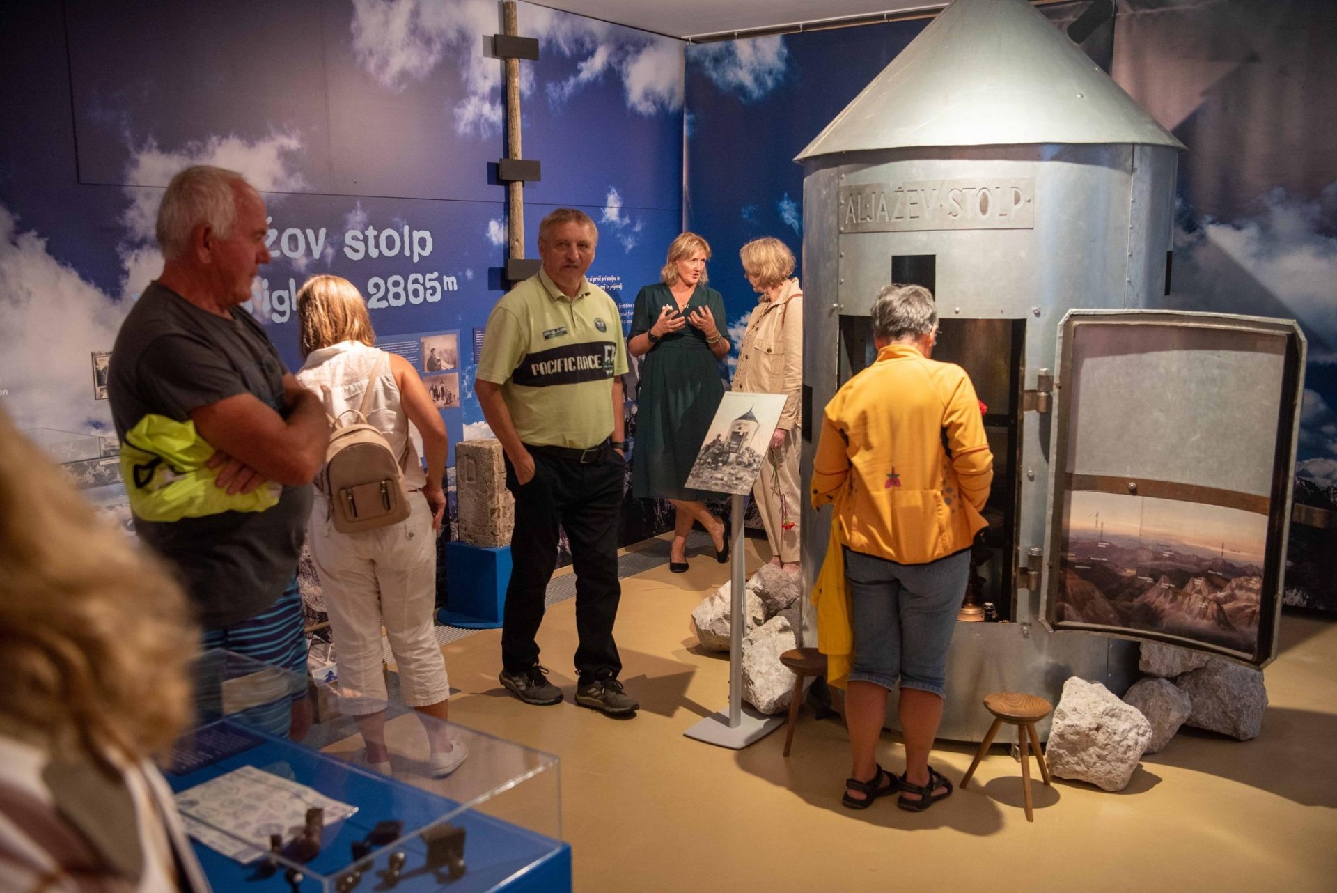 Kljub kislemu vremenu se je 30. avgusta na odprtju razstave Stolp nas gleda v Slovenskem planinskem muzeju v Mojstrani zbralo kar 150 obiskovalcev, ki so skupaj obeležili 130-letnico postavitve Aljaževega stolpa na Triglavu.
