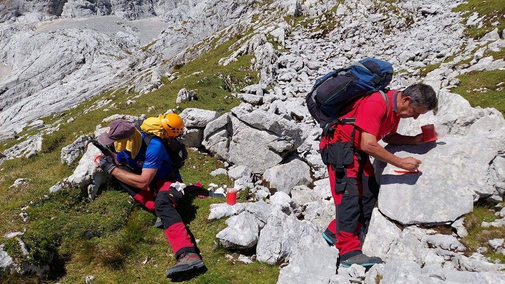 V obsežni in zahtevni, dvodnevni delovni akciji so kamniški markacisti uredili dostop od Kamniškega sedla do Turske gore, v širši okolici obnovili markacije ter zamenjali nekaj poškodovanih žigov in skrinjic na območju Rink. (foto arhiv PD Kamnik)