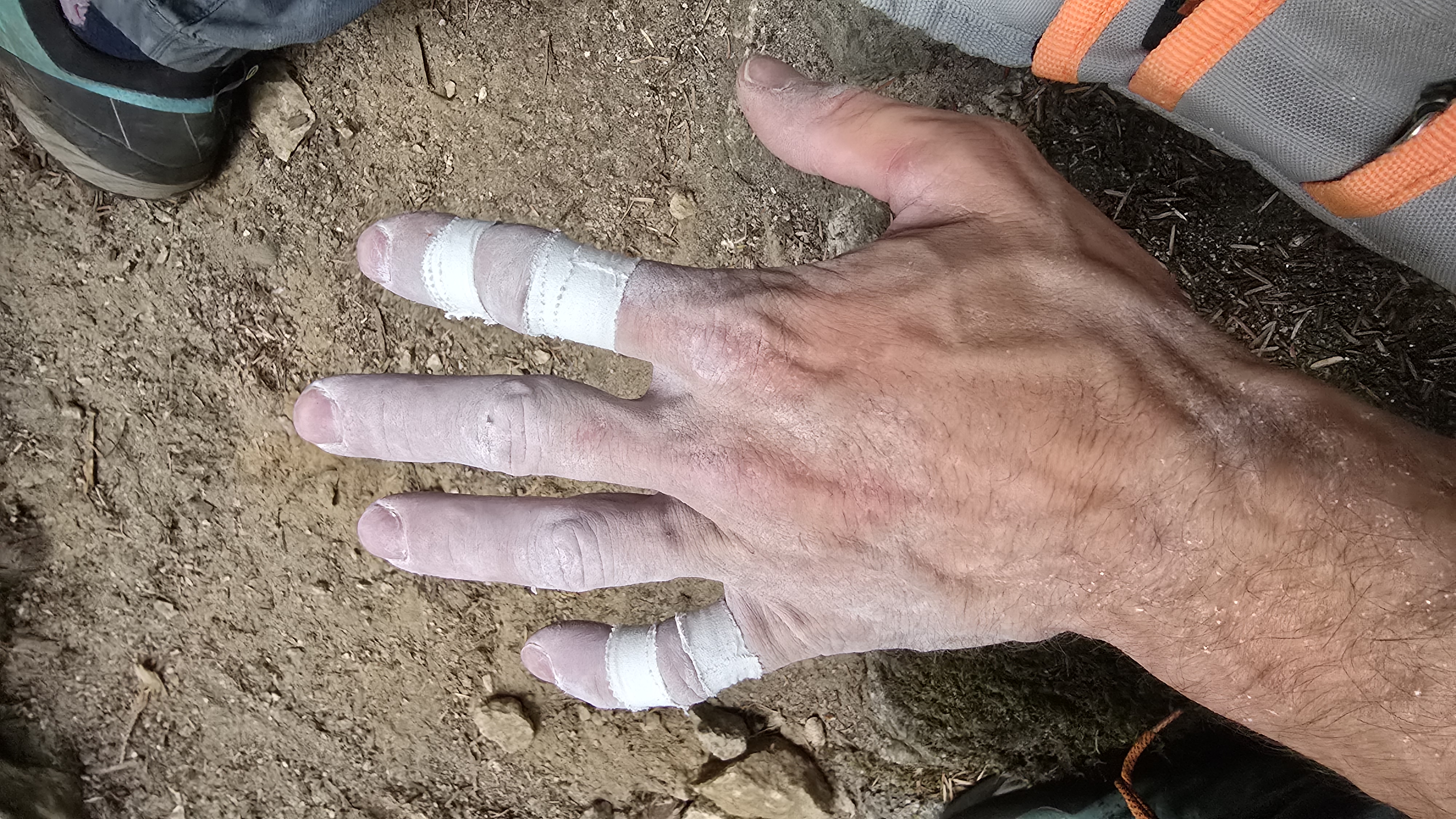 Zdaj je bil čas, da smer poskusim z nameščanjem varovanja. Dvakrat sem skoraj dosegel prvi počitek. Krivil sem vreme brez sapice in sprejel tvegano odločitev, da poskusim še zadnji dan. Giacomo, prijatelj, ki jo je prav tako poskušal, je ostal z menoj – tokrat samo zaradi mene. Bil je utrujen in časa, da bi smer poskusila oba, ni bilo. Na srečo je smer zjutraj v senci in pihal je prijeten veter. Po uri sva bila spet na polici, kjer sva skupaj preživela že osem dni. Povil sem le prst, ki je to res potreboval, in tistega, ki mu je manjkalo malo kože. Dodal sem še kapljico sekundnega lepila, da sem nadomestil manjkajočo kožo. Počutil sem se odlično in prišel do iste višine kot dan prej, celo malo višje. A to še ni bilo dovolj. Smer sem očistil, povil še en prst in se dobro odpočil.