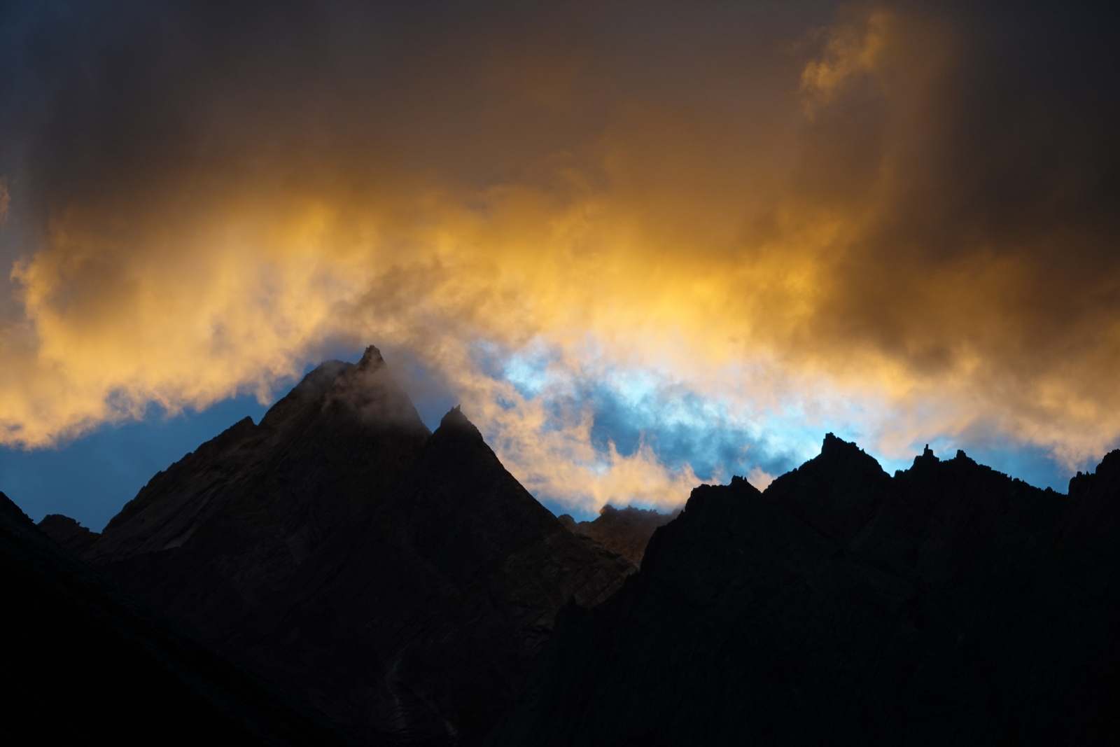 Strm raz, ki elegantno vodi na vrh direktno nad bazo, je bil odlična ogrevalna smer. Po nadležnem dostopu po strmem grušču in majavih blokih, naju je pričakalo približno 300 m višinskih metrov plezanja v večinoma dobri skali in tremi res lepimi raztežaji po strmih počeh in zajedah v zgornji peti težavnostni stopnji. Po preplezani prvenstveni smeri, ki sva jo poimenovala Spicy little fish sva imela s približno 5200 m visokega vrha odličen razgled na okoliške gore. Turo sva zaradi bližine baznega tabora izpeljala v enem dnevu. Med turo sva si ogledala naslednji cilj in v dolini, na poti proti le temu, pustila del opreme. Dva ali tri dni počitka v bazi je bilo dovolj, da sva se počutila dovolj spočita, predvsem pa aklimatizirana za bolj konkretno plezanje.