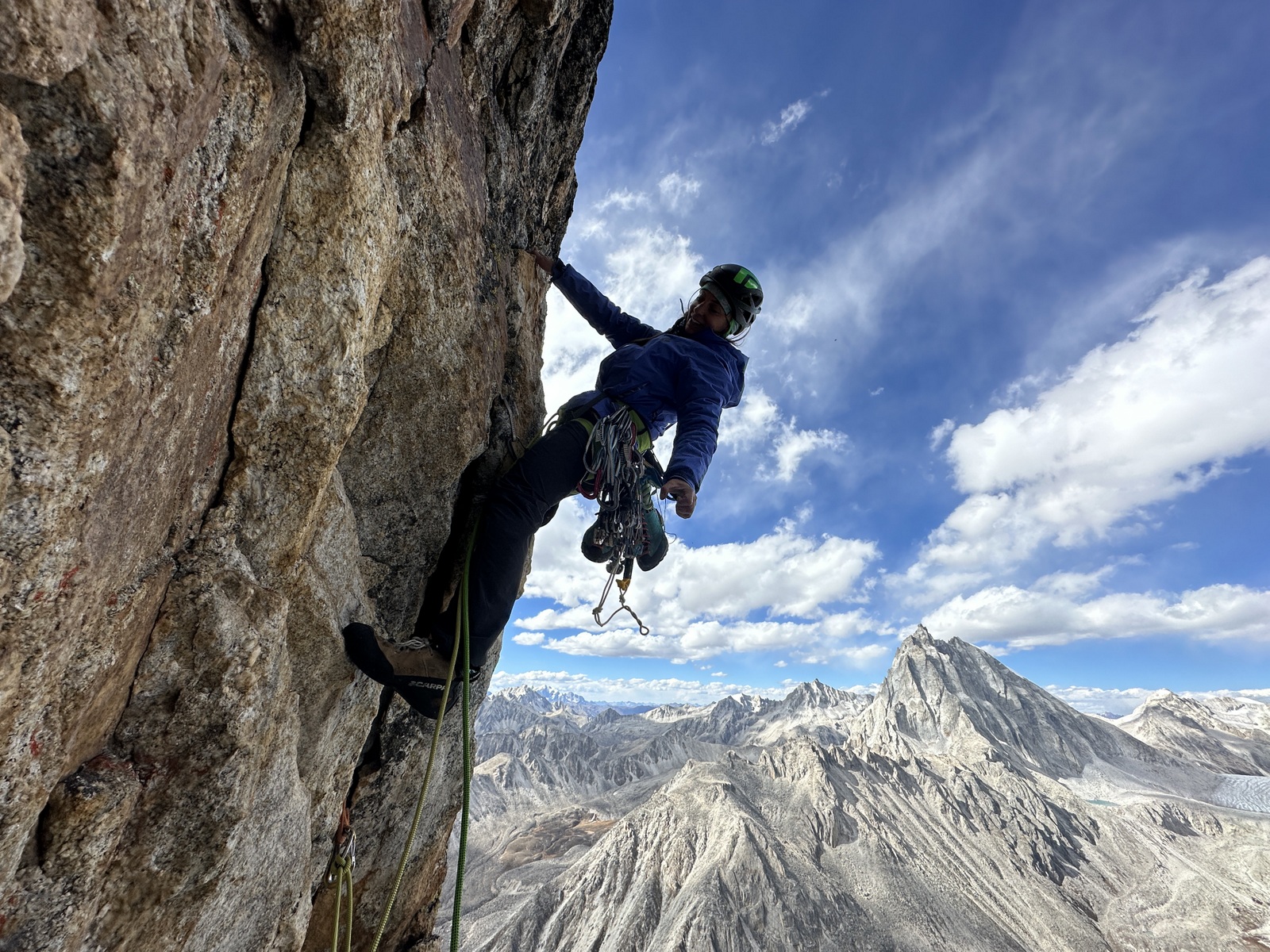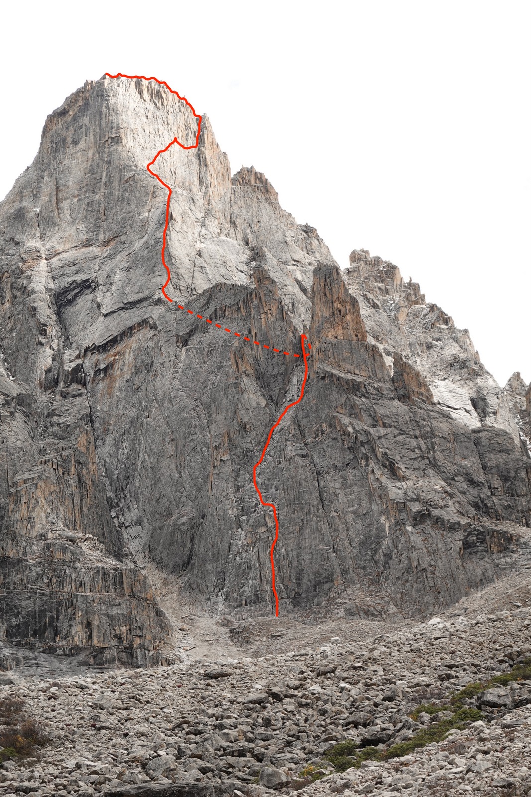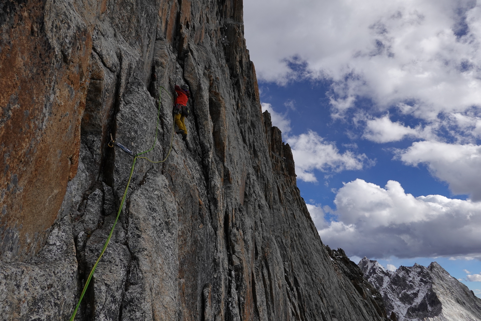 Za naslednji cilj sva najprej dostopila bližje stene, ki sva jo želela preplezati in tam prespala, za lažji in hitrejši začetek plezanja. Težko je bilo oceniti, kako hitro bova lahko plezala v ogledani liniji, zato sva se odločila, da s sabo vzameva minimalno opremo za bivak. Mraz in pozen prihod sonca v to zahodno steno je precej začinilo plezanje. Kljub neekstremnim težavam je bilo plezanje precej delikatno zaradi mestoma posnežene skale. Vseeno sva napredovala dokaj hitro in se posledično odločila, da po približno ocenjeni polovici preplezane stene “deponirava” opremo za bivak. Lažja sva še hitreje napredovala, dokler se ob zadnji svetlobi dneva ni malo zakompliciralo tik pod vrhom v strmi steni brez pravih poči za varovanje. Prihod noči naju je prisilil v kreativno iskanje prehodov, en diagonalni spust po vrvi in nekaj tehničnega plezanja. Na okoli 5600 m visokem vrhu sva bila zadovoljna, da je bila improvizacija uspešna in nama ni bilo treba obrniti tik pod vrhom. Sestop s spusti po vrvi je terjal precej zbranosti pozno v noč. Deponirano bivak opremo sva dosegla okoli treh zjutraj in se utrujena zavila v eno spalno vrečo ter pričakala jutro. Po špartanskem zajtrku sva sestopila vse do baznega tabora. Poleg dobrega plezanja v divjem okolju je bila tura v znamenju številnih kristalov, ki sva jih našla pod in v steni. Od tod ime najine prvenstvene smeri Grad kristalov. Kratko poslabšanje vremena je bilo kot naročeno za počitek in ogled naslednjega cilja. Žal si je Fanny na tej ogledni turi zvila gleženj in po dveh dneh opazovanja otekline in premlevanju smiselnega nadaljevanja, sva se odločila, da končava hribovsko aktivnost in se za nekaj časa prestaviva v Liming - Kitajski prestolnico tradicionalnega plezanja.