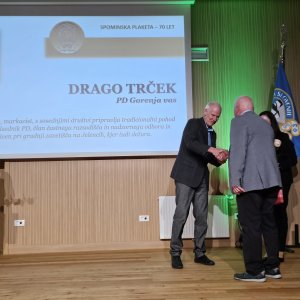 Drago Trček (PD Gorenja vas) za dolgoletno delo v društvu na vodstvenih funkcijah, kot planinski vodnik, markacist, aktiven pri gradnji zavetišča na Jelencih in organizaciji pohoda na Blegoš,