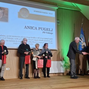 Anica Pugelj (PD Velenje) za dolgoletno delo v društvu kot planinska vodnica in mentorica planinskega krožka, varuhinja gorske narave in mentorica krožka za planince v tretjem življenjskem obdobju,