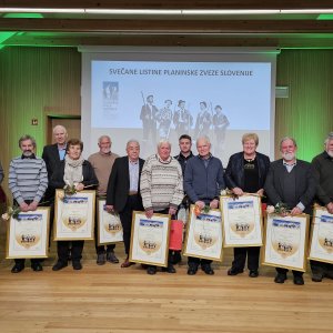 Prejemniki svečanih listin PZS, najvišjih priznanj Planinske zveze Slovenije za dolgoletno predano prostovoljno delo v planinstvu. (foto Manca Ogrin)