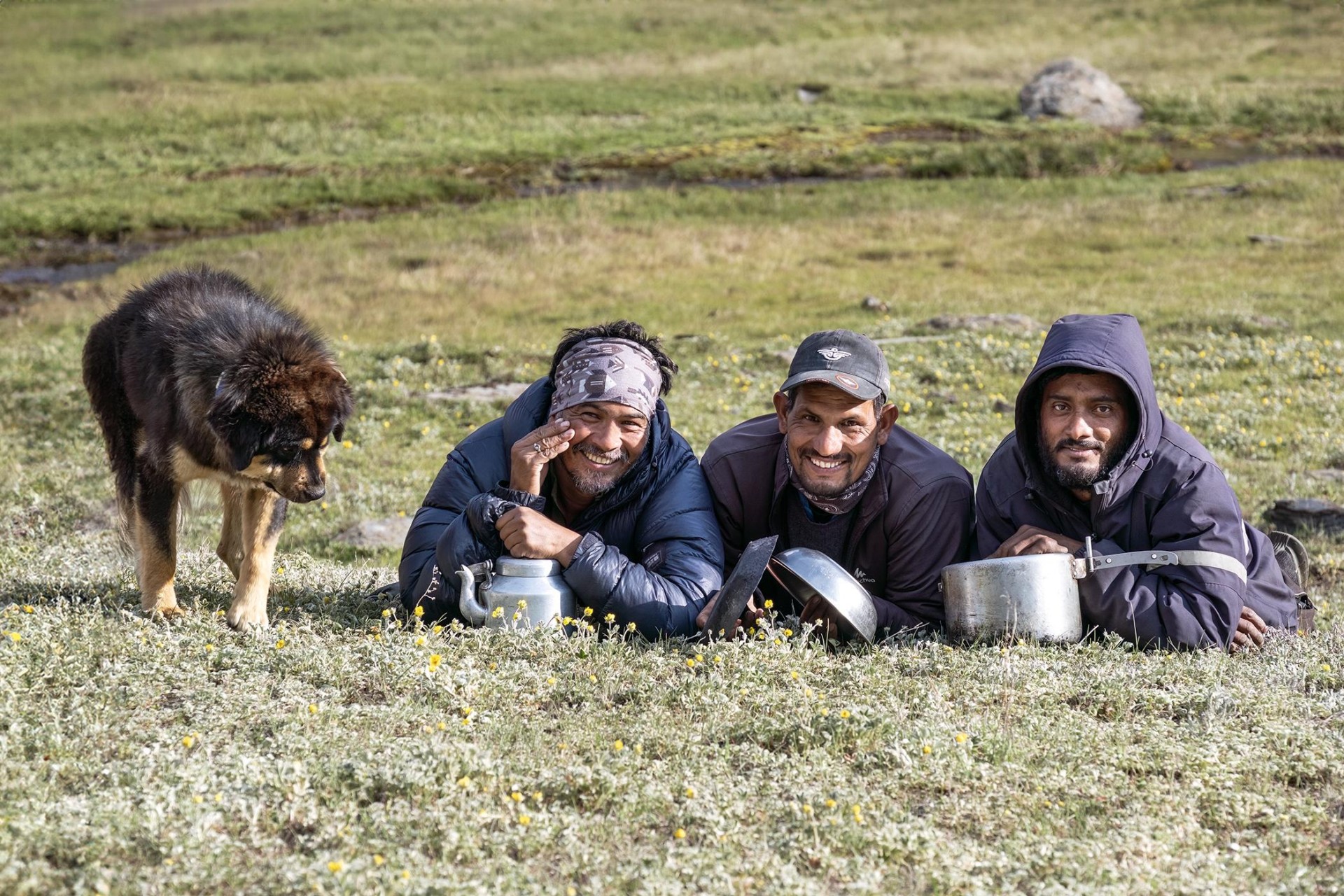 V bazi so za nas skrbeli koordinator/vodnik Bhagwan Singh - 44, kuhar Devraj - 37 in pomočnik Mahesh Singh Rana - 33. Zvezni oficir je šel z nami le do baze, kasneje pa smo se ponovno srečali v Martoliju ob povratku, ko je proti bazi vodil svojo skupino gostov.