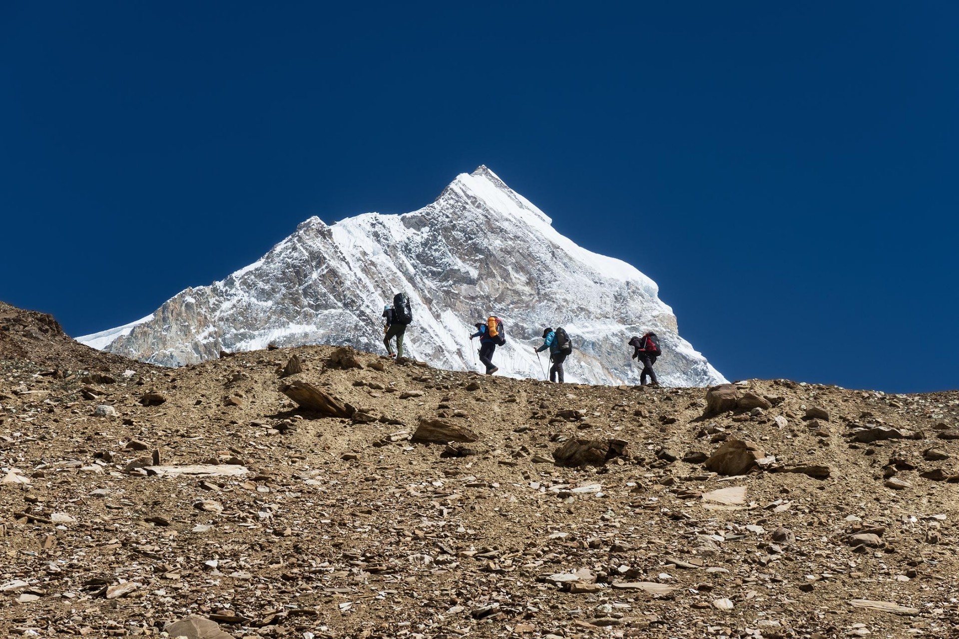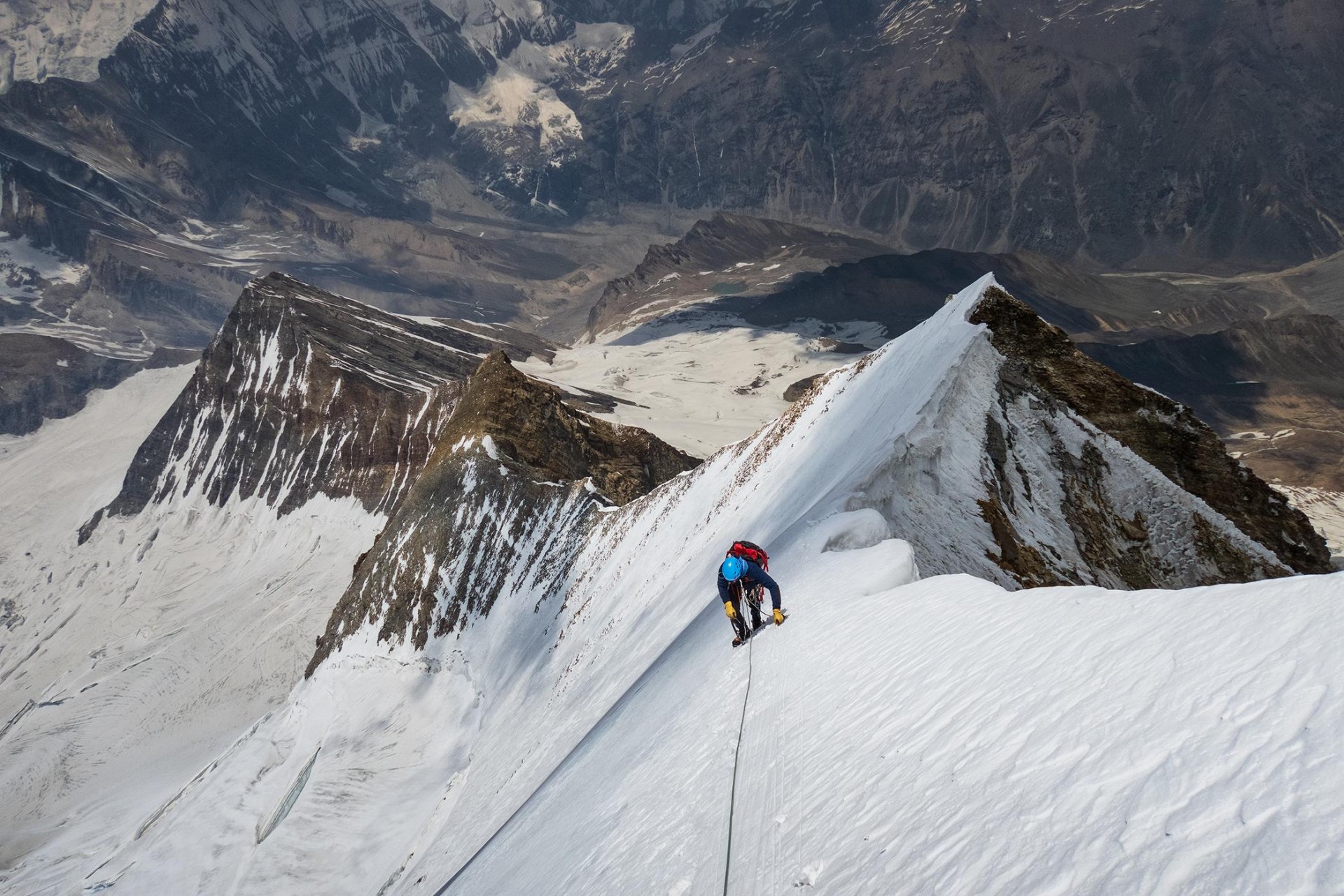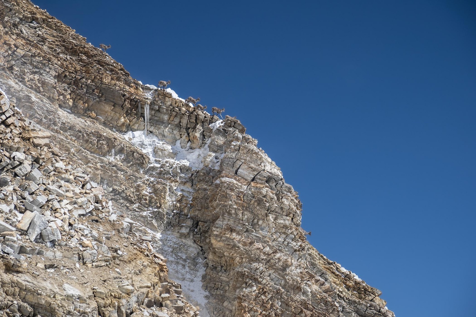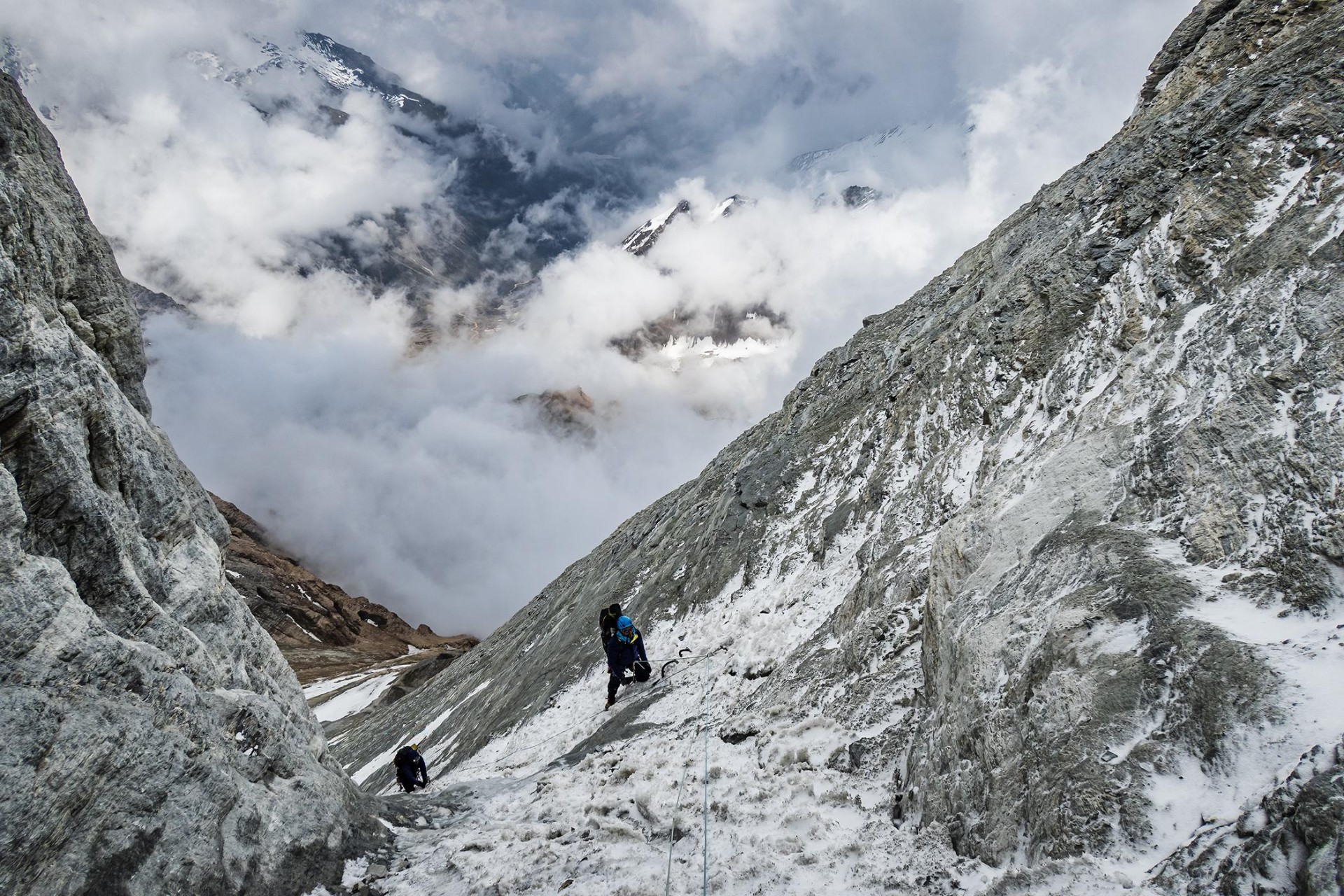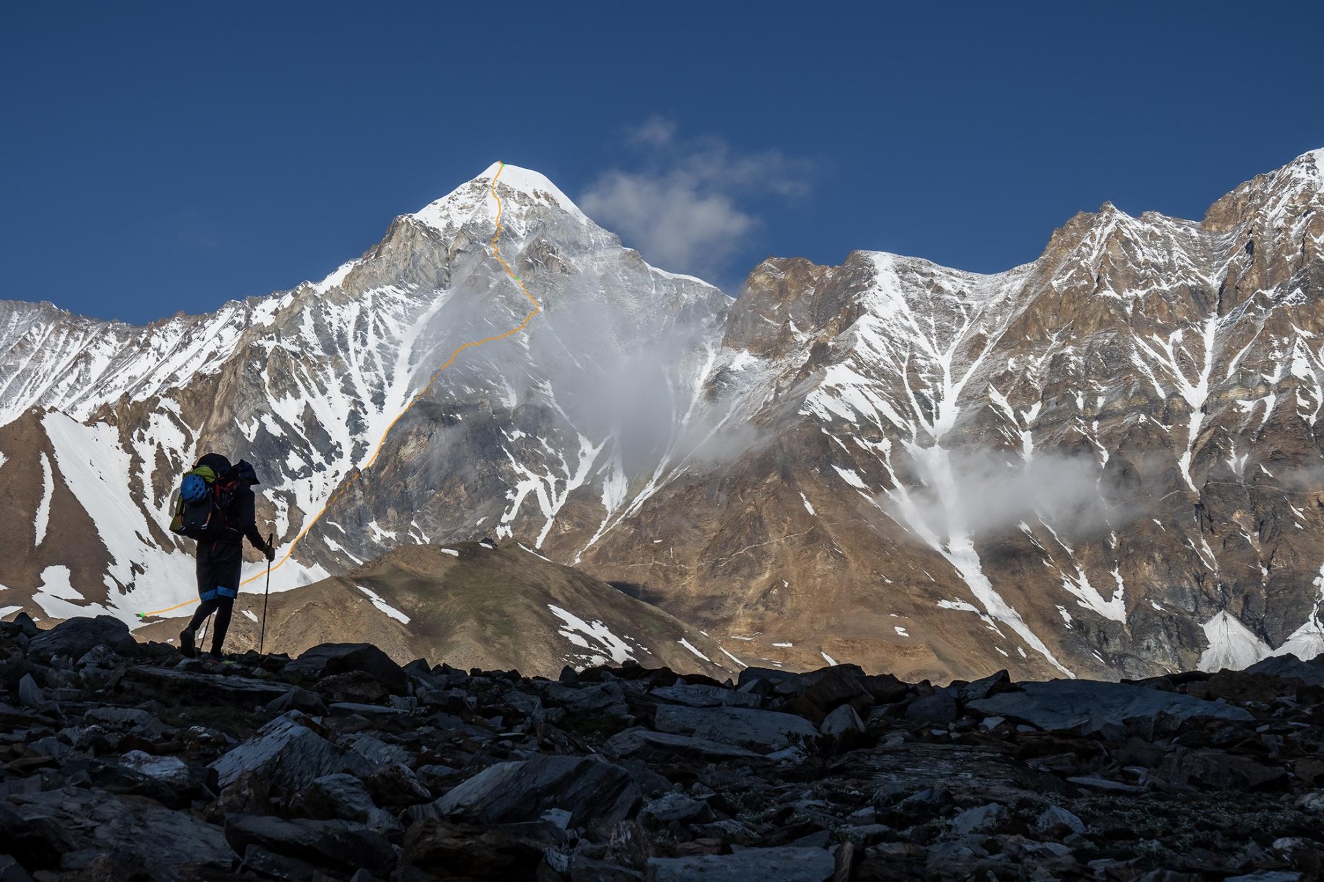 Vzpon na vrh Changuch je zaznamovala čreda koz, ki je proti alpinistom vztrajno valila kamenje (foto Marko Prezelj)