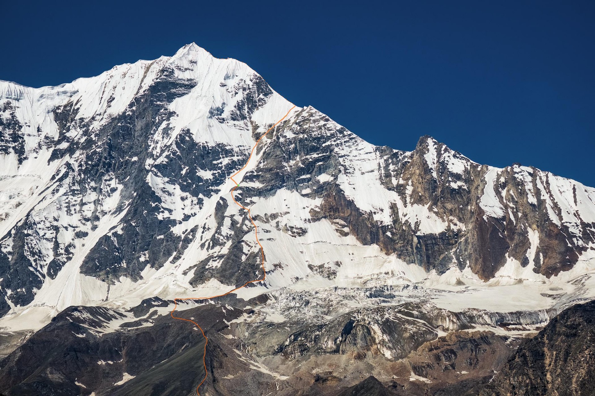 Severni ozebnik na Changuch 6322 m - »Blue Sheep Couloir«, 1000 m, 80° - tretji vzpon na vrh. |