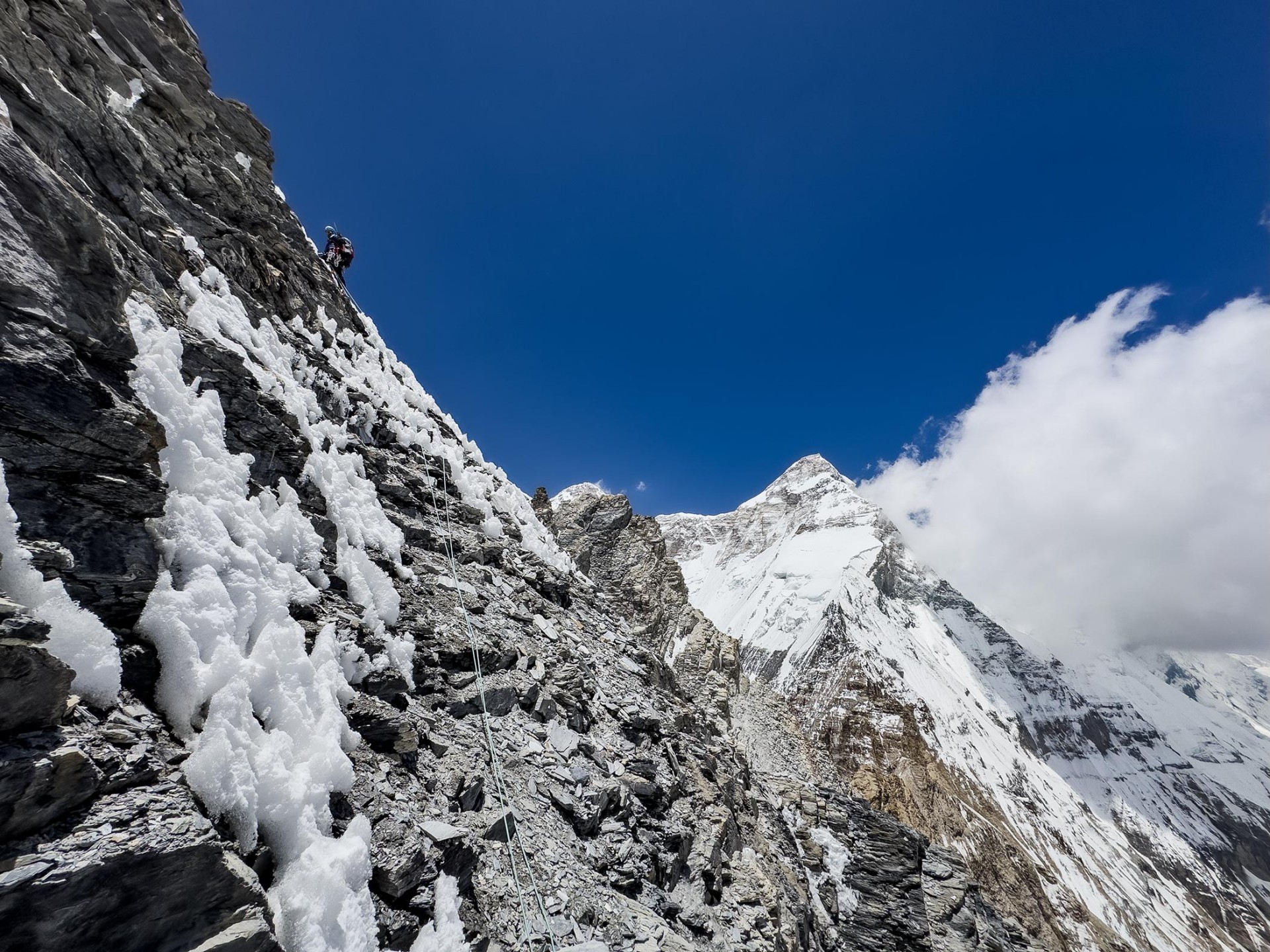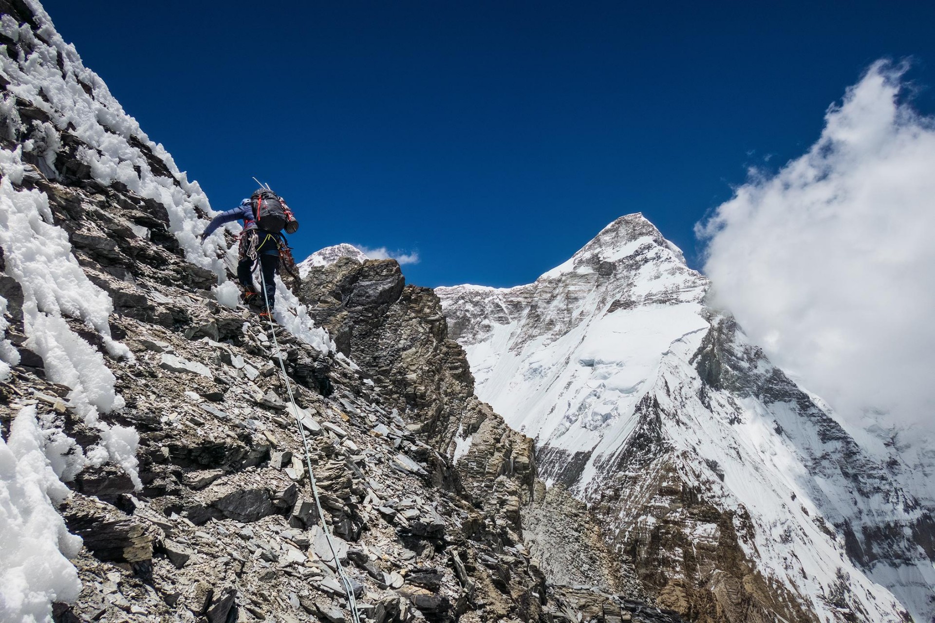 25. 5.: Baza: grebensko sedlo V od baze 5300 m n. v., 4 ure, uro in pol sestop. V bazo prinesejo še zadnjo tretjino tovorov.
