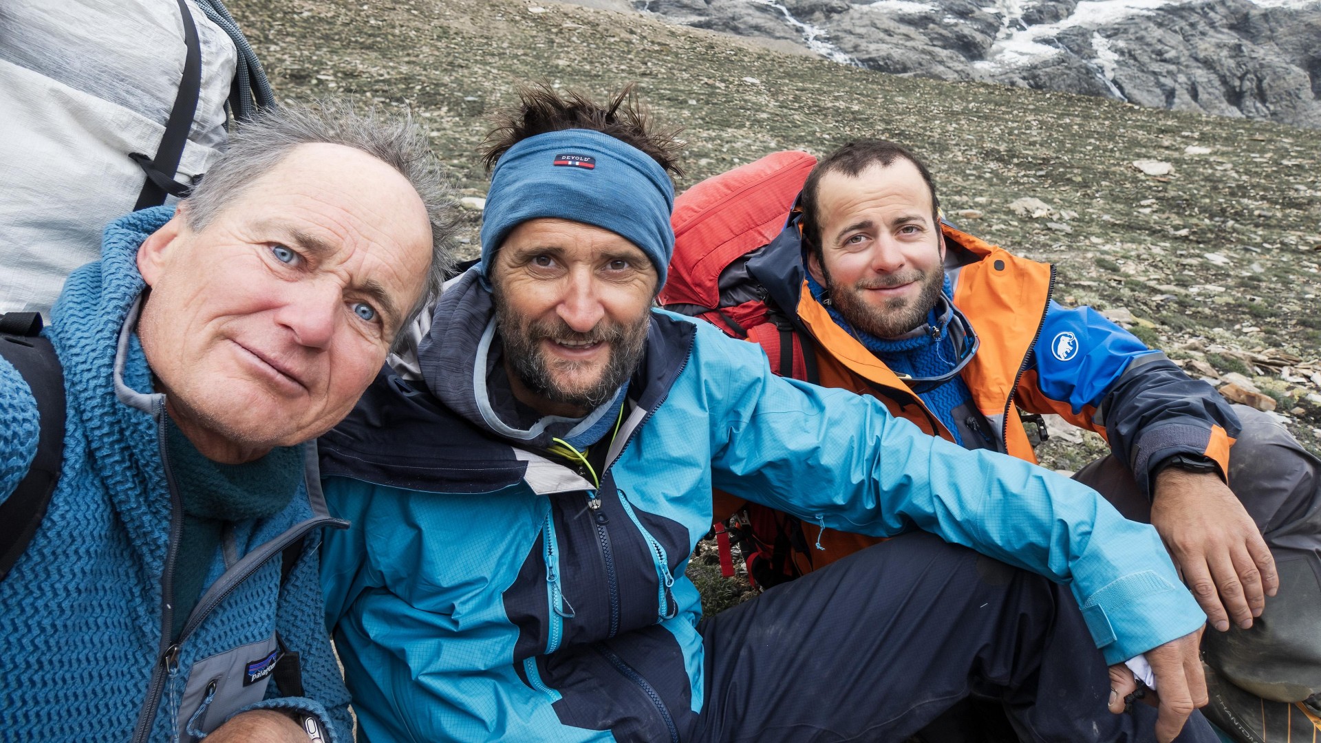 Gruzijec Archil Badriashvili, Francoz Manu Pellissier in Slovenec Marko Prezelj, člani mednarodne alpinistične odprave Nana Devi East 2024 (foto Marko Prezelj)